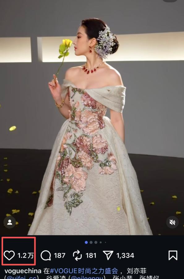 刘亦菲的数据竟然打不过韩流, 以她为封面的视频点赞量才一万多,被以宁艺卓为封面的视频点赞量甩开了一大截,也就只比宋茜好一些。